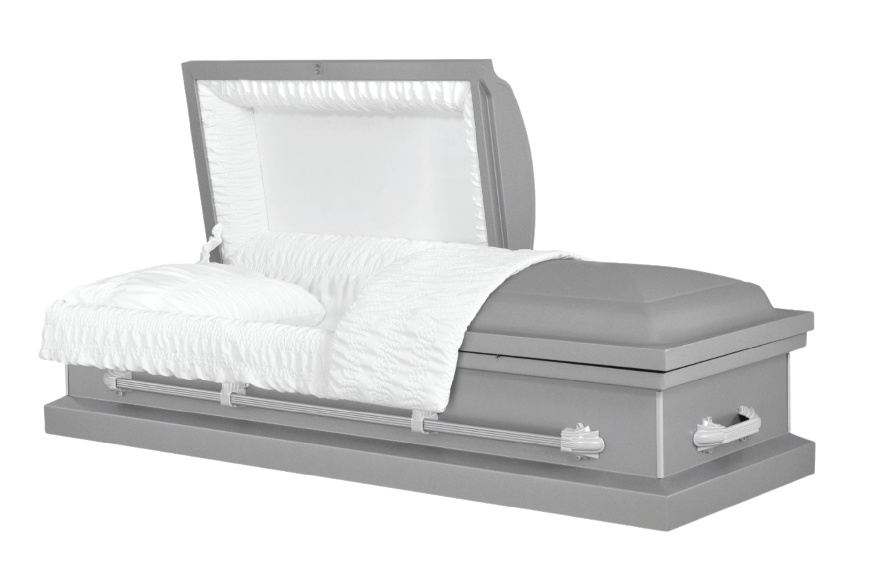 Matthews/Aurora Casket Company. Silver Hammertone, White Satin Interior. 20 Gauge Gasketed Steel.
